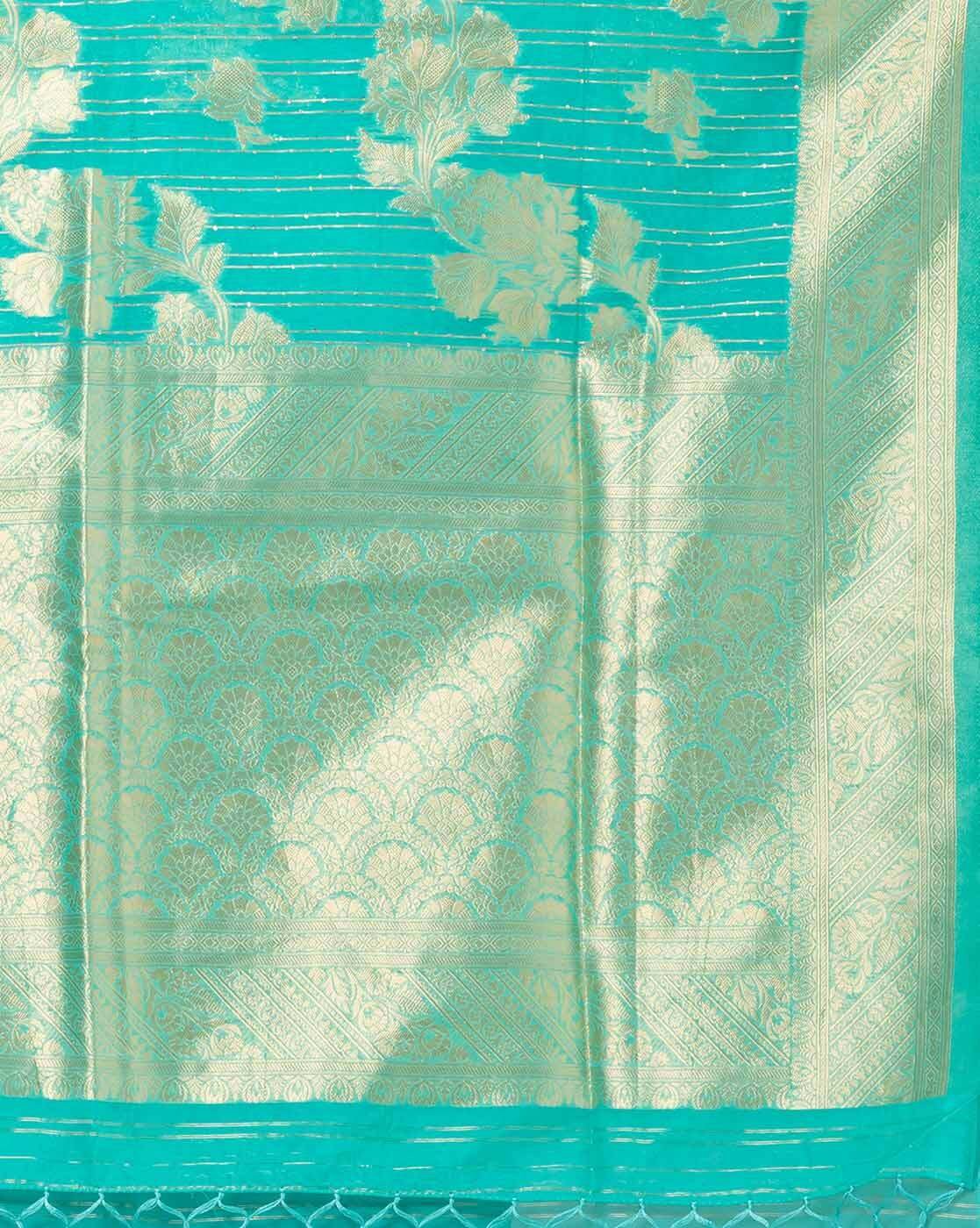 - The last image gives a detailed look of the blouse piece that comes with this saree (The model is wearing a blouse from our in-house wardrobe)
